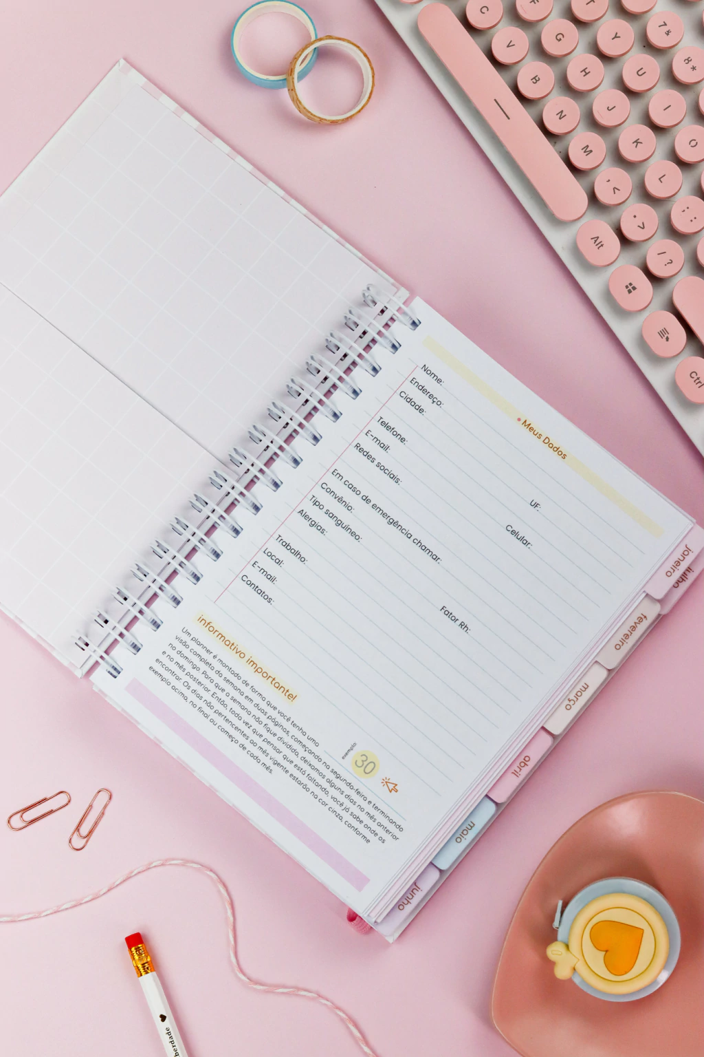 Design Atraente: Com um layout moderno e elegante, este planner não só é funcional, mas também um acessório de moda. Leve-o para onde for e impressione todos ao seu redor!
